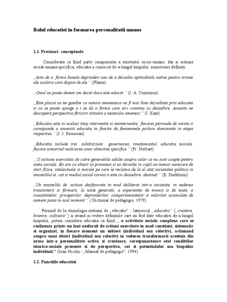 Educaţia are sarcina de a pregăti omul ca element activ al vieţii sociale.