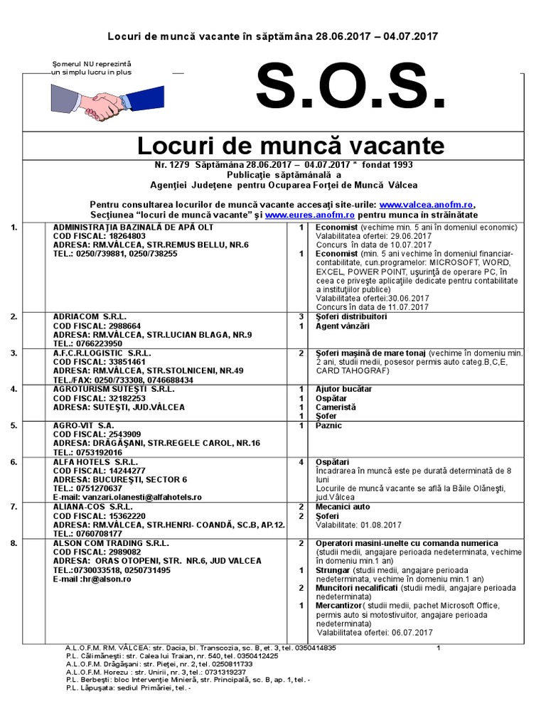 Şc.profesională) locul de muncă vacant se află în. Locuri de munca in ramnicu valcea din toate domeniile. Adiuta transport srl angajeaza pentru pozitia operator introducere, validare si prelucrare date in ramnicu valcea, strada doctor hacman, nr.
