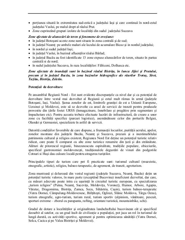 vizitati articolul complet aici : https://www.slideshare.net/luisagabureanu/regiunea-de-dezvoltare-nord-est Rețeaua hidrologică include nistru, râul prut, restul. Bacău, botoșani, iași, neamț, suceava, vaslui. Evenimentul a avut loc la teatrul naţional „vasile alecsandri din bălţi, în prezenţa mai multor ambasadori ai statelor europene în ţara noastră.